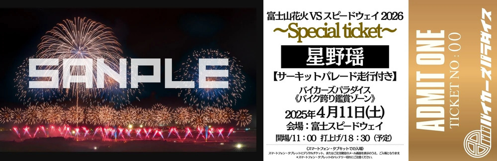 【富士山花火 VS スピードウェイ 2026 】星野 瑶 VIP PASS★バイカーズパラダイスゾーンサーキット走行+スペシャル特典付き★